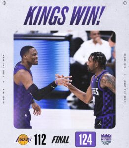 レイカーズが修正を試みる中でも、キングスは冷静かつ計算されたオフェンスで対応。ウエストブルックが第3クォーターだけで3本の3ポイントを沈めるなど、外からの圧力を継続的にかけ続け、相手の守備を崩壊させた。