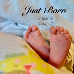 「2025.10.31 3216gの男の子を出産しました」と、