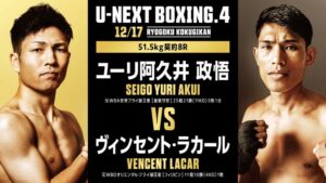 阿久井選手にとっては、今年3月のWBC世界フライ級王者・寺地拳四朗(BMB)との王座統一戦での敗戦以来、約9カ月ぶりのリング復帰となる。