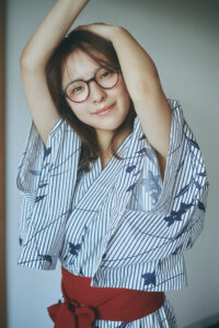 さらに、早朝の撮影で捉えた浴衣に眼鏡姿のカットは、