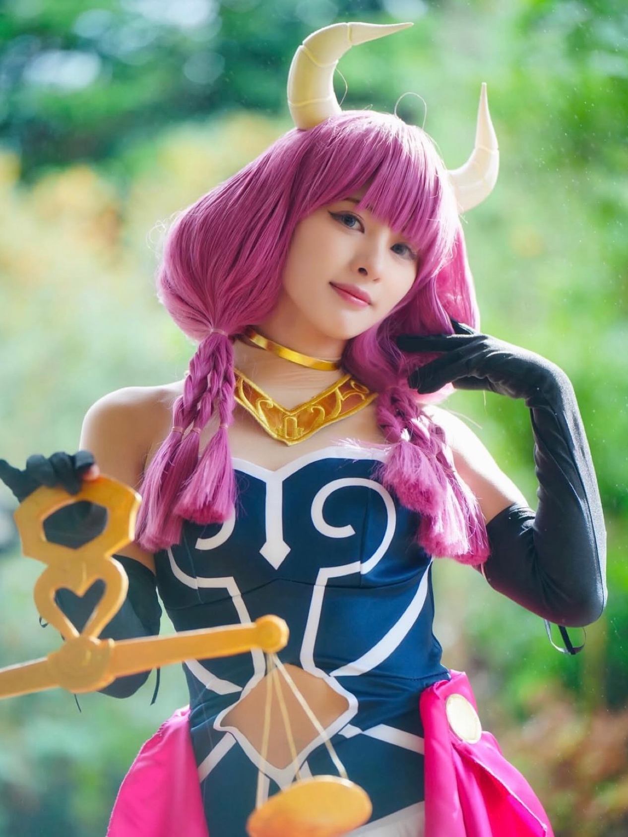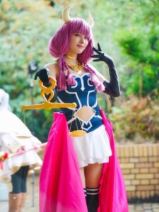 河出アナが再現したアウラは、魔王直属の幹部「七崩賢」のひとり。作中ではフリーレンに敗れ退場するが、印象的なビジュアルと名シーンの数々で、今なお高い人気を誇る存在だ。今回のコスプレは2025年のハロウィンイベントで撮影されたもので、悪役らしい表情作りから「服従の天秤」の小道具、衣装の細部に至るまで徹底したこだわりが感じられる。