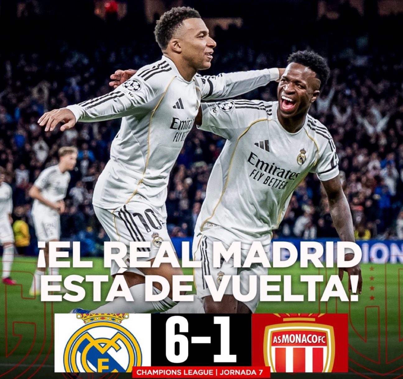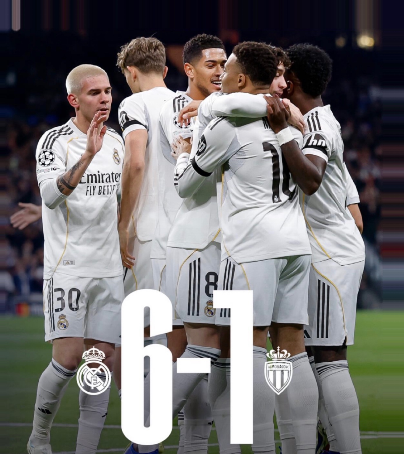 レアル・マドリードは現地時間20日、UEFAチャンピオンズリーグ(CL)リーグフェーズ第7節でASモナコと対戦。攻撃陣が爆発し、6-1という衝撃的なスコアで圧勝を飾った。