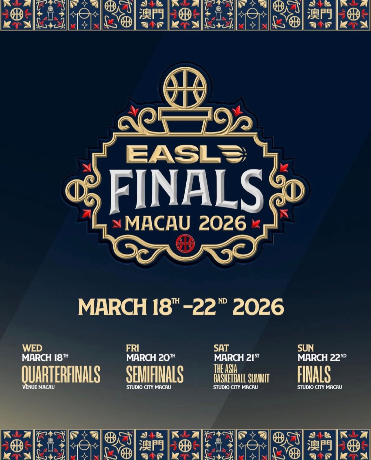 東アジアのトップクラブが覇を競う国際プロバスケットボールリーグ「東アジアスーパーリーグ(EASL)」は1月26日、2025-26シーズンのポストシーズン大会「EASLファイナルズ」を、2026年3月18日から22日にかけてマカオで開催すると正式に発表した。EASLの最終決戦がマカオで行われるのは今回が初となる。