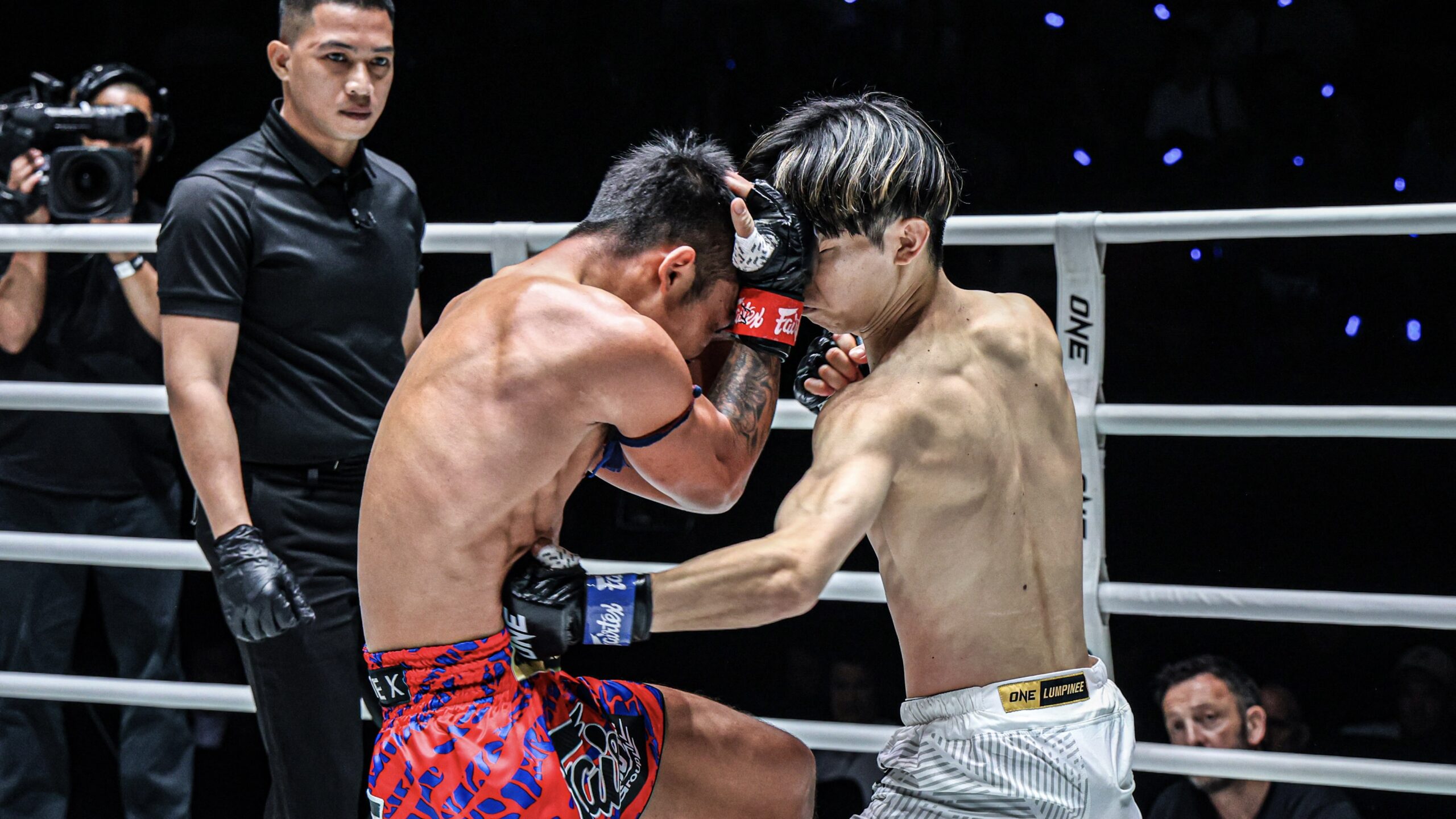 金子選手が8オンスで大久保選手が10オンスのグローブハンデで