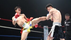 右カーフ、左ボディを正確に合わせ、終盤にはロープを背負わせて連打とヒザ蹴りで圧力をかけ続けた。若き挑戦者のタフさは際立っていたが、王者の試合運びを崩すには至らなかった。