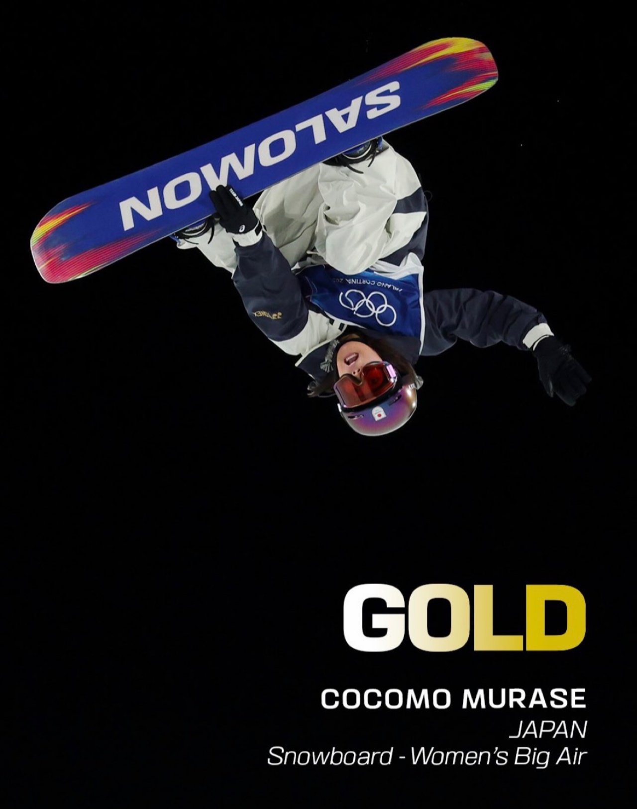 日本女子スノーボード史上初となる五輪ビッグエア金メダル。