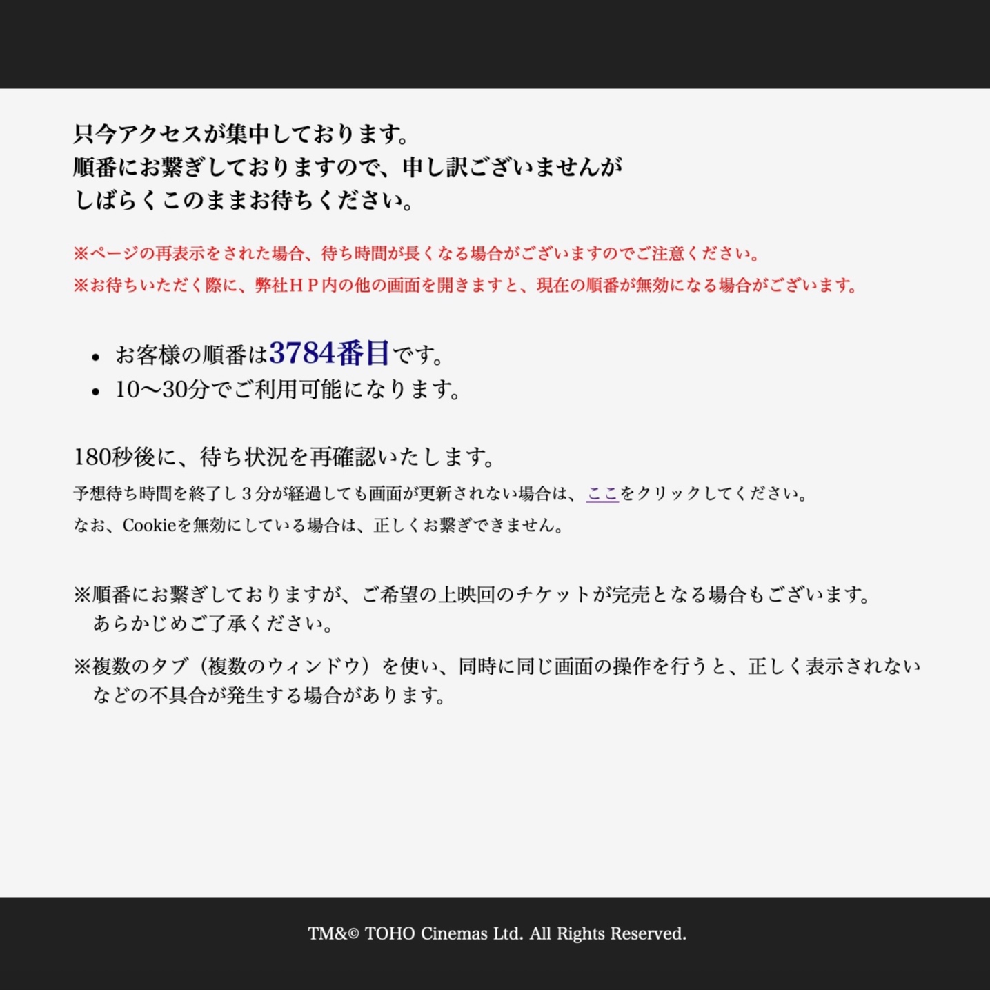 この日は全国的に雨予報。屋内レジャーである映画館の需要が高まるタイミングだった。にもかかわらず、オンライン購入が正常に機能しない現状は、利用者にとってあまりにも不便だ。
