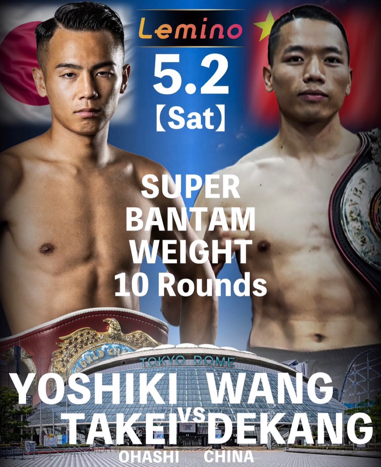 武居選手の一戦は、そのセミファイナルとして組まれ、同級8回戦でWBA同級15位のワン・デカ(26=中国、9勝3KO1敗)と拳を交える。
