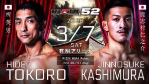 7日、東京・有明アリーナで開催された総合格闘技イベント「RIZIN.52」。第6試合のバンタム級(61キロ以下)MMA5分3Rで、引退まで残り2試合となったレジェンドの所英男(48=リバーサルジム武蔵小杉所プラス)が、柔術黒帯の新鋭鹿志村仁之介(24=BattleBox)にわずか66秒で失神一本負けを喫した。