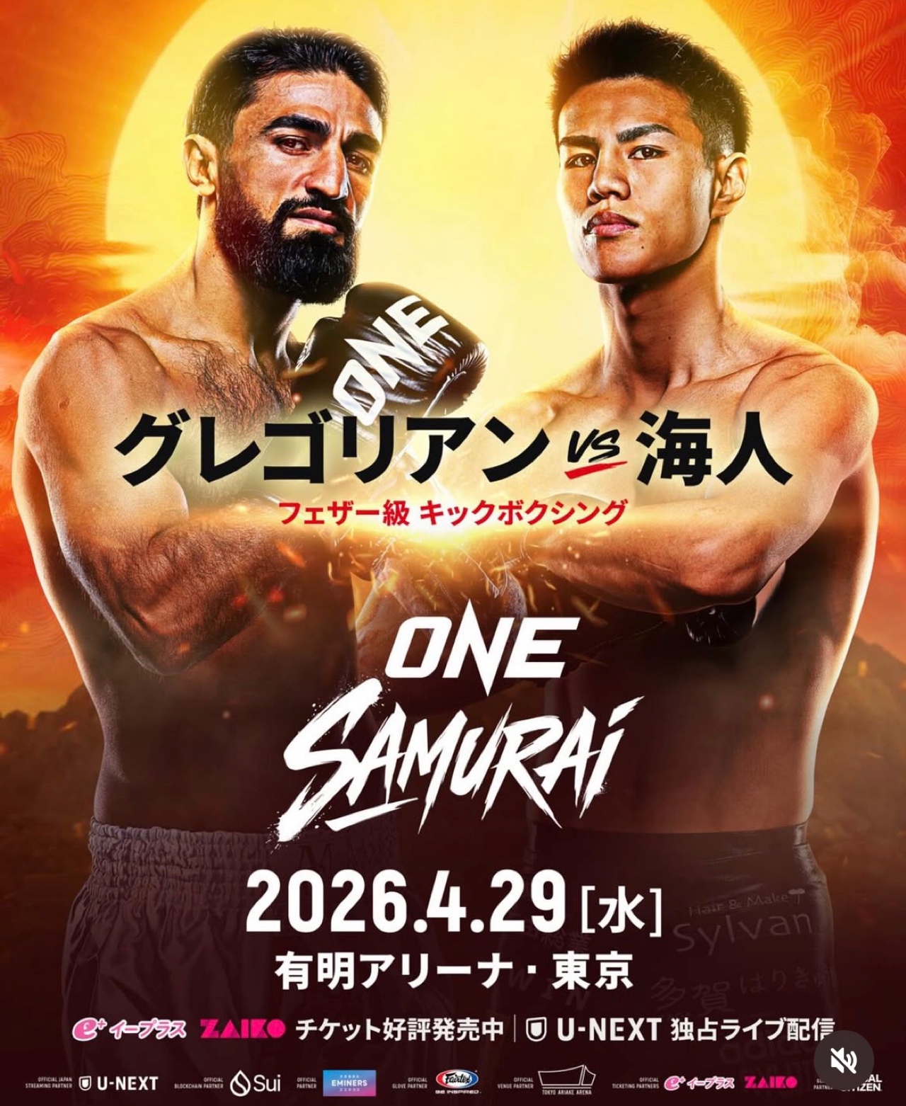 4月29日に東京・有明アリーナで開催される格闘技イベント『ONE SAMURAI 1』で、シュートボクシングのエース・海人(TEAM F.O.D)が、元GLORY王者マラット・グレゴリアン(アルメニア)と対戦することが決定した。フェザー級キックボクシング(70.3キロ契約、3分3R)で行われるこの一戦は、昨年3月に一度消滅した“因縁カード”の仕切り直しとなる。
