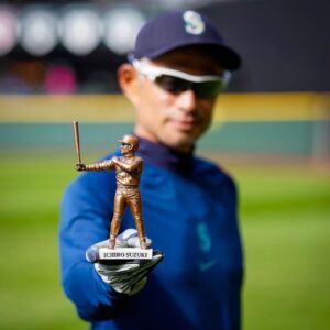 MLBの球場配布グッズは希少性が高く、特にイチロー氏関連のアイテムは日本国内でも高額で取引されるケースが多い。今回のレプリカ像も日本のオークションやフリマサイトでプレミア価格になる可能性が高く、サイン入りはもちろん、通常版でも高値が付くことが予想される。