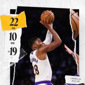 ロサンゼルス・レイカーズはユタ・ジャズに131―107で快勝。八村選手は22得点10リバウンドを記録し、今季初のダブルダブルを達成した。チームは3連勝でシーズンを締めくくり、プレーオフへ向けて好調を維持した形だ。