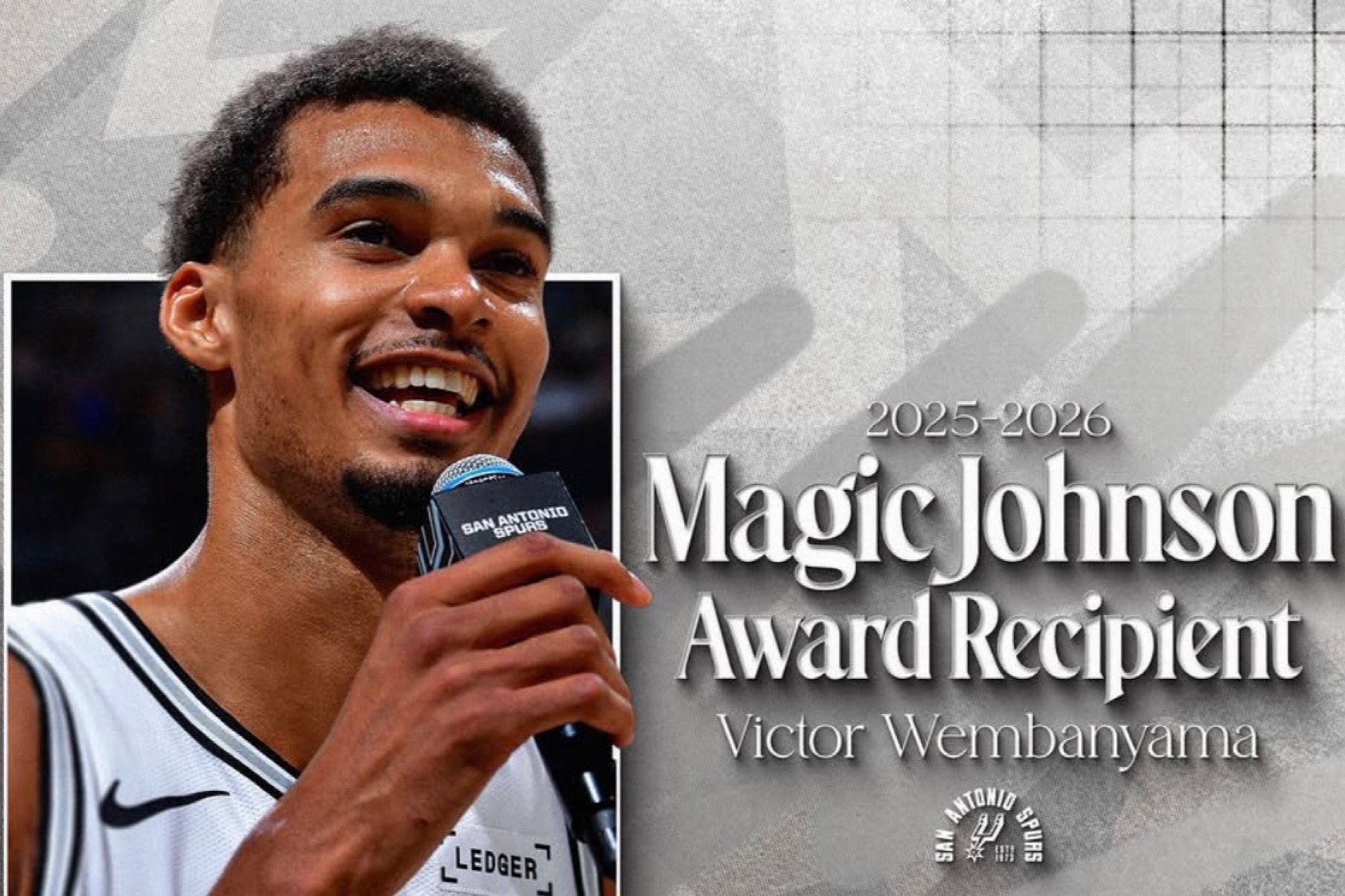 米プロバスケットボール協会(NBA)スパーズの若き大黒柱、ビクター・ウェンバンヤマ選手(22)が、2025-26年シーズンの「マジック・ジョンソン賞」に初めて選出された。全米のバスケットボール担当記者らで構成されるプロバスケットボール記者協会(PBWA)が16日、公式に発表した。