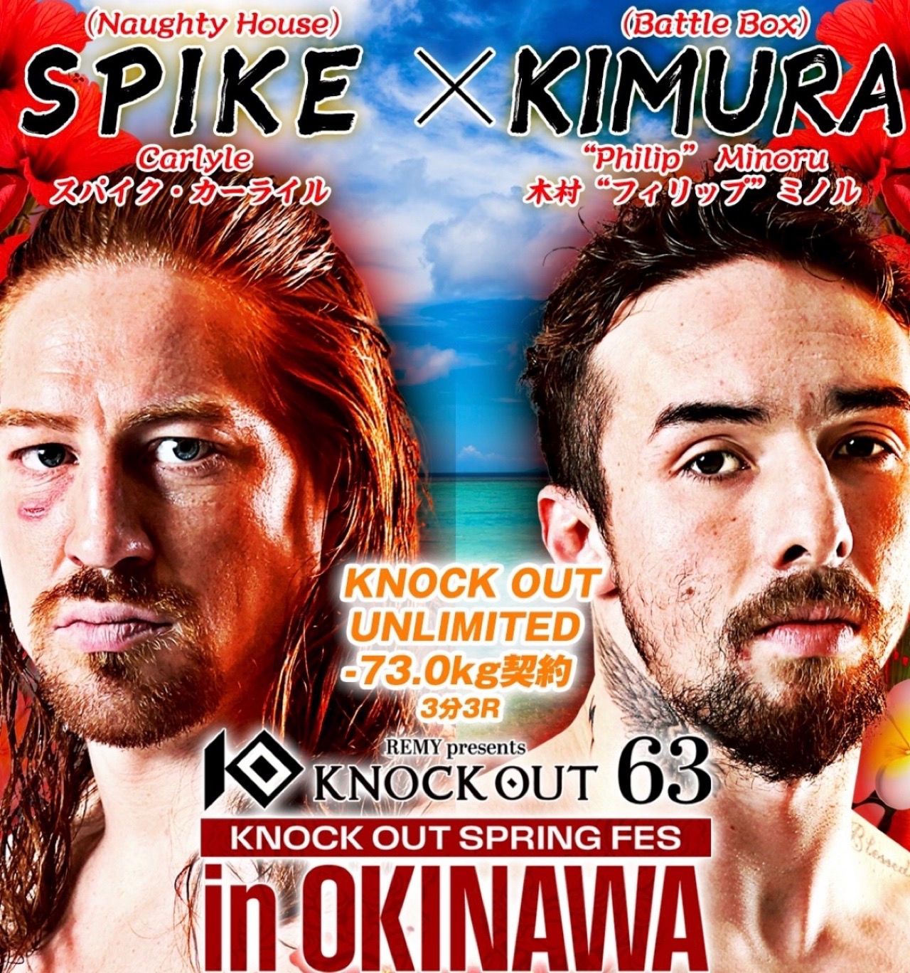 2026年4月18日、沖縄コンベンションセンターで開催された『KNOCK OUT.63 SPRING FES IN OKINAWA』。セミファイナルで行われたKNOCK OUT-UNLIMITEDルール(-73.0kg契約)で、木村“フィリップ”ミノル選手はスパイク・カーライル選手に開始26秒でKO負けを喫した。