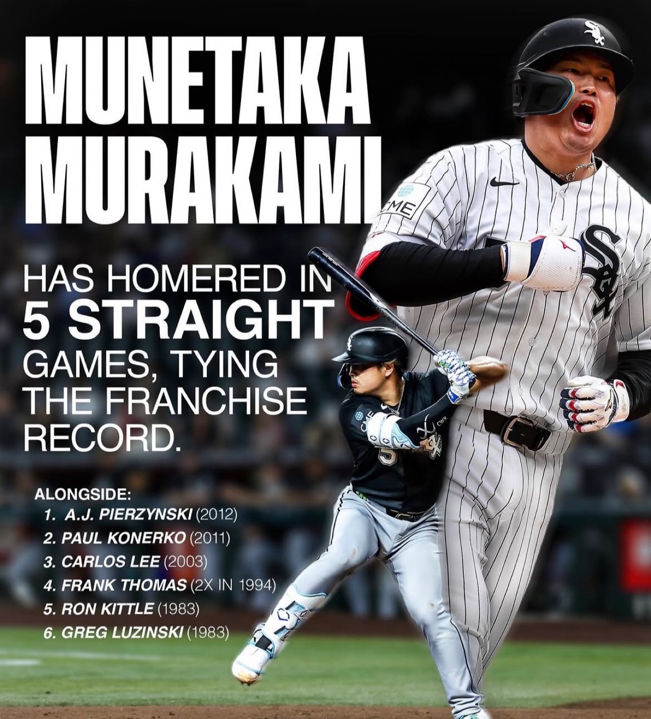 今季、ヤクルトから2年総額3400万ドルでホワイトソックスに加入した26歳は、開幕からその長打力を遺憾なく発揮。開幕3連戦でいきなり3試合連続本塁打を記録すると、一時はやや調子を落としたものの、17日のアスレチックス戦で放った満塁弾をきっかけに再加速。この試合の一発で、5戦連発と勢いは一気に頂点へ達した。