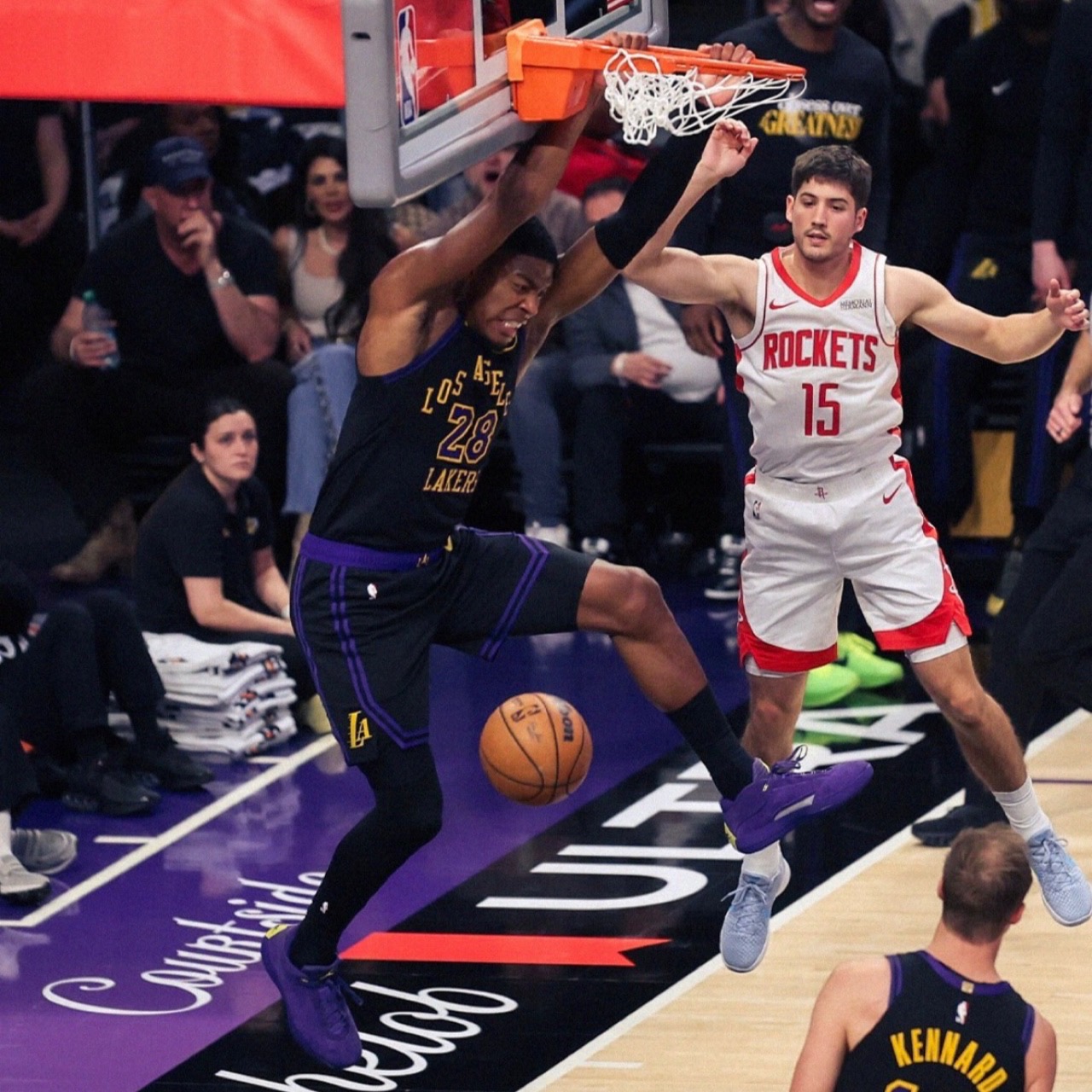 初戦を制して迎えたこの日、レイカーズはマーカス・スマート選手、ルーク・ケナード選手、レブロン・ジェームズ選手、八村塁選手、ディアンドレ・エイトン選手の5人が先発。対するロケッツはケビン・デュラント選手が復帰し、序盤から激しい点の取り合いとなった。