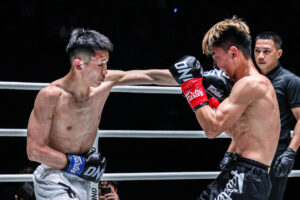 対するイーハンは、2026年1月のONEデビュー戦で敗れたものの、前に出続ける積極的なファイトスタイルが持ち味。今回も開始からプレッシャーをかけ続けた。